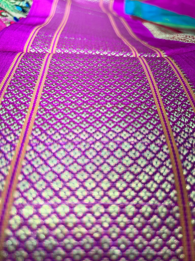 They call it Paithani — the queen of silks, born in Yeola, Maharashtra. Once adorned by royalty and traded by Romans for gold, this handwoven saree is not just attire; it is a legacy spun in devotion. A handwoven traditional classic Paithani takes upto two weeks to physically manifest. And, if you have plans for the designers or custom Paithani you need to order it six to twelve months in advance. Paithani weaving is a craft. Each day an inch of Paithani is handwoven.